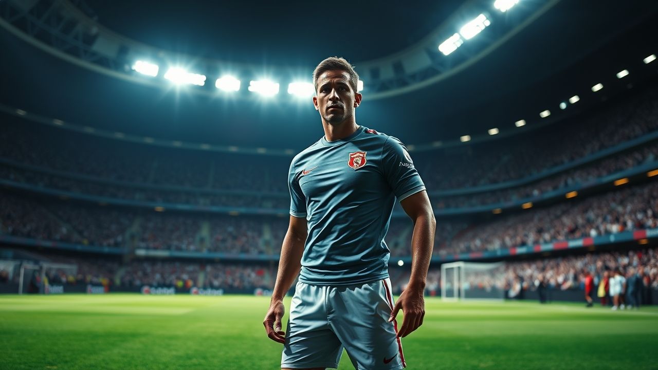 {"prompt":"A powerful, wide (landscape) shot of a charismatic footballer, resembling Mario Balotelli, standing on a pristine green football pitch during a night match. The player is in a generic, unbranded modern football kit, with his characteristic athletic build and distinctive hairstyle. He stands confidently, looking directly forward with a complex expression that blends stoic defiance, introspection, and a hint of world-weariness, rather than overt celebration. His arms are slightly outstretched or placed on his hips, conveying a sense of questioning or acknowledging the constant spotlight. Bright, dramatic stadium floodlights illuminate him from above, casting sharp highlights and deep shadows, emphasizing his presence and the intense pressure. The background features the blurred, expansive stands of a large stadium, filled with an indistinct, vibrant crowd, creating a powerful sense of scale and atmosphere. The focus is sharp on the player, with a shallow depth of field making the background slightly soft. The overall tone is intense and dramatic, capturing the duality of immense talent and a complex, constantly scrutinized personality. Realistic artistic style, no text, logos, or watermarks.","originalPrompt":"A powerful, wide (landscape) shot of a charismatic footballer, resembling Mario Balotelli, standing on a pristine green football pitch during a night match. The player is in a generic, unbranded modern football kit, with his characteristic athletic build and distinctive hairstyle. He stands confidently, looking directly forward with a complex expression that blends stoic defiance, introspection, and a hint of world-weariness, rather than overt celebration. His arms are slightly outstretched or placed on his hips, conveying a sense of questioning or acknowledging the constant spotlight. Bright, dramatic stadium floodlights illuminate him from above, casting sharp highlights and deep shadows, emphasizing his presence and the intense pressure. The background features the blurred, expansive stands of a large stadium, filled with an indistinct, vibrant crowd, creating a powerful sense of scale and atmosphere. The focus is sharp on the player, with a shallow depth of field making the background slightly soft. The overall tone is intense and dramatic, capturing the duality of immense talent and a complex, constantly scrutinized personality. Realistic artistic style, no text, logos, or watermarks.","width":1280,"height":720,"seed":42,"model":"flux","enhance":false,"nologo":true,"negative_prompt":"undefined","nofeed":false,"safe":false,"quality":"medium","image":[],"transparent":false,"isMature":false,"isChild":false}