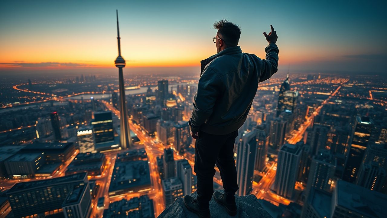 {"prompt":"A sweeping panoramic view capturing a charismatic male music legend standing triumphant atop a high vantage point, gazing over a sprawling, lively metropolis during twilight. The cityscape below is alive with shimmering lights and bustling activity, featuring a distinctive skyline with a sleek, modern skyscraper subtly reminiscent of Toronto's iconic silhouette. The artist is dressed in sharp, avant-garde streetwear that blends contemporary fashion with urban edge, embodying confidence and cultural authority. Ethereal light streaks or abstract sound wave motifs gently radiate outward from his figure, symbolizing his global musical influence and innovative spirit, seamlessly blending into the softly illuminated dusk sky that suggests interconnectedness worldwide. The scene is bathed in cinematic warmth, as the golden hour sun casts a rich, amber glow that accentuates his silhouette and brings vibrancy to the city below. The composition evokes feelings of grandeur, ambition, and the transformative power of music within modern urban life, emphasizing the scene's realism and depth--captured with luminous detail, emphasizing atmosphere and presence without any text or branding.\n\nA powerful, wide landscape shot of a visionary male music icon, embodying success and cultural influence, standing confidently at a high vantage point overlooking a sprawling, vibrant metropolis at dusk. The city lights twinkle below, with a distinctive, modern skyscraper silhouette in the background that subtly evokes Toronto's iconic skyline. The icon is dressed in a sleek, contemporary, high-fashion streetwear outfit, reflecting current urban trends. Subtle, elegant light trails or abstract sound wave patterns emanate from the figure, symbolizing global musical reach and innovation, gently merging into the ambient twilight sky which hints at a vast, interconnected world. The lighting is dramatic and cinematic, with the warm glow of a setting sun casting a golden hue over the scene, highlighting the figure's silhouette and the dynamic city below. The composition emphasizes grandeur, ambition, and the profound impact of music on global culture, with a deep focus on the modern urban environment as a backdrop for global influence. Realistic photographic style. No text, logos, watermarks, or other typographic elements are present.","originalPrompt":"A powerful, wide landscape shot of a visionary male music icon, embodying success and cultural influence, standing confidently at a high vantage point overlooking a sprawling, vibrant metropolis at dusk. The city lights twinkle below, with a distinctive, modern skyscraper silhouette in the background that subtly evokes Toronto's iconic skyline. The icon is dressed in a sleek, contemporary, high-fashion streetwear outfit, reflecting current urban trends. Subtle, elegant light trails or abstract sound wave patterns emanate from the figure, symbolizing global musical reach and innovation, gently merging into the ambient twilight sky which hints at a vast, interconnected world. The lighting is dramatic and cinematic, with the warm glow of a setting sun casting a golden hue over the scene, highlighting the figure's silhouette and the dynamic city below. The composition emphasizes grandeur, ambition, and the profound impact of music on global culture, with a deep focus on the modern urban environment as a backdrop for global influence. Realistic photographic style. No text, logos, watermarks, or other typographic elements are present.","width":1280,"height":720,"seed":42,"model":"flux","enhance":false,"nologo":true,"negative_prompt":"undefined","nofeed":false,"safe":false,"quality":"medium","image":[],"transparent":false,"isMature":false,"isChild":false}