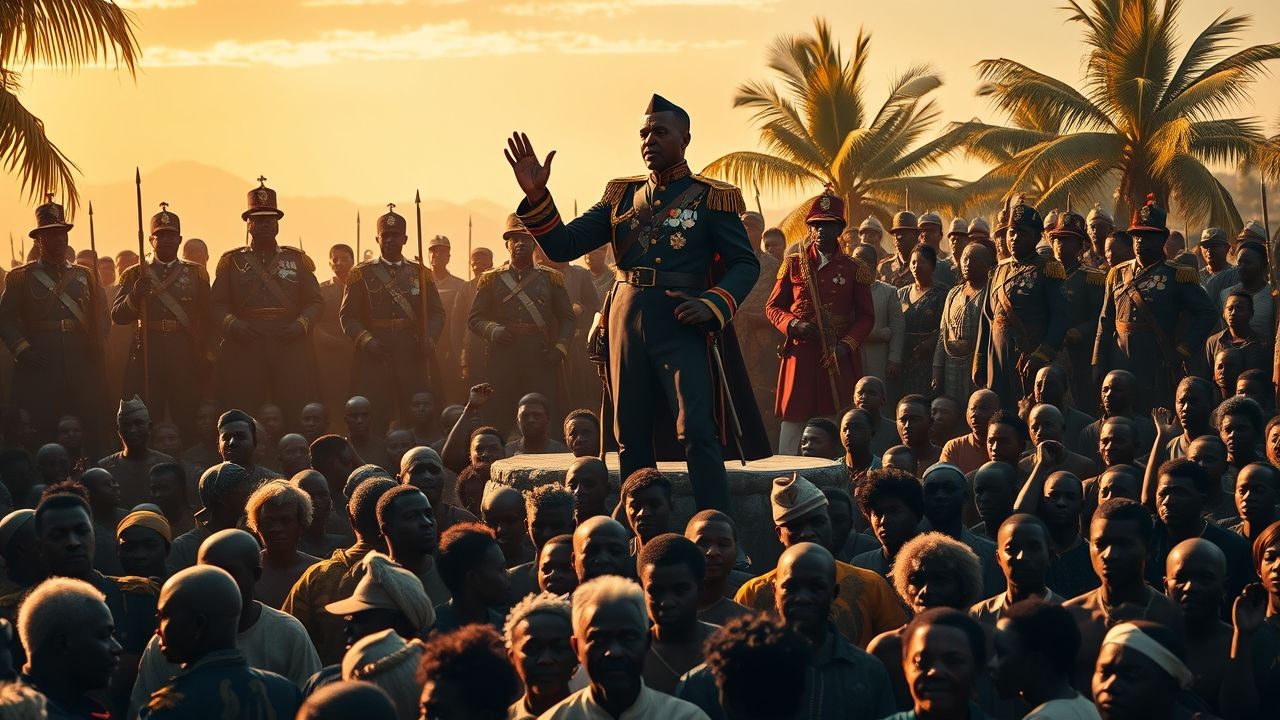 Dessalines a mené les forces haïtiennes à la victoire finale contre les armées françaises lors de la bataille de Vertières, puis a proclamé l’indépendance de la nation, scellant ainsi la fin de la domination coloniale française et de l’esclavage à Saint-Domingue.