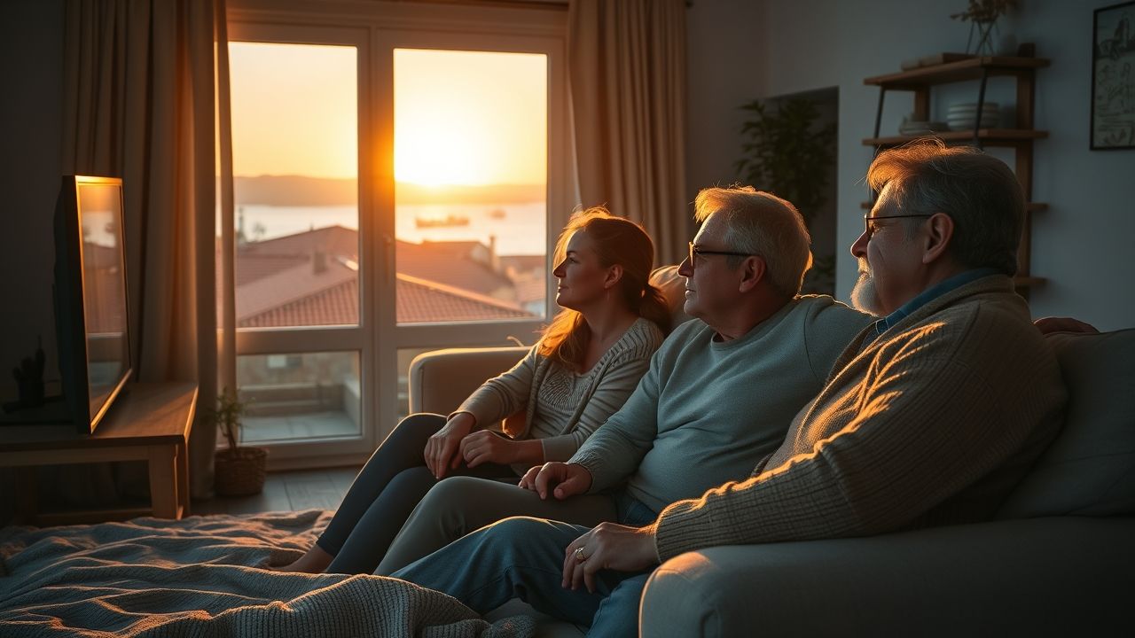 {"prompt":"A wide, realistic landscape shot capturing a cozy French living room bathed in the soft, warm light of early evening. A multi-generational family, comprising around three to four individuals (e.g., a couple with a teenager or an older relative), is comfortably settled on a large sofa, their attention fully captivated by a television screen just out of frame to the left, casting a gentle, ambient glow on their engaged faces. Their expressions are a mix of concentration and emotional responsiveness, reflecting deep immersion in a compelling daily narrative. Through a large, slightly open window, golden hour light from the setting sun illuminates distant terracotta rooftops and a glimpse of the tranquil Mediterranean sea with a few boats, subtly evoking the coastal town of Sete, France. The room is decorated with warm, inviting colors, natural wood elements, and soft fabrics. The overall atmosphere is one of domestic comfort, shared experience, and anticipation. No text, logos, or any other typographic elements are present in the image.","originalPrompt":"A wide, realistic landscape shot capturing a cozy French living room bathed in the soft, warm light of early evening. A multi-generational family, comprising around three to four individuals (e.g., a couple with a teenager or an older relative), is comfortably settled on a large sofa, their attention fully captivated by a television screen just out of frame to the left, casting a gentle, ambient glow on their engaged faces. Their expressions are a mix of concentration and emotional responsiveness, reflecting deep immersion in a compelling daily narrative. Through a large, slightly open window, golden hour light from the setting sun illuminates distant terracotta rooftops and a glimpse of the tranquil Mediterranean sea with a few boats, subtly evoking the coastal town of Sete, France. The room is decorated with warm, inviting colors, natural wood elements, and soft fabrics. The overall atmosphere is one of domestic comfort, shared experience, and anticipation. No text, logos, or any other typographic elements are present in the image.","width":1280,"height":720,"seed":42,"model":"flux","enhance":false,"nologo":true,"negative_prompt":"undefined","nofeed":false,"safe":false,"quality":"medium","image":[],"transparent":false,"isMature":false,"isChild":false}