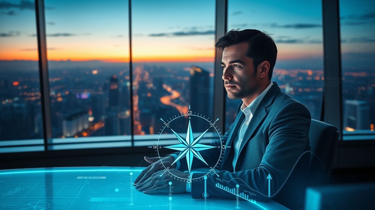 {"prompt":"A wide, landscape shot depicting a sophisticated, thoughtful person, appearing gender-neutral and professional, seated calmly at a sleek, minimalist desk in a high-tech control room or modern office. Beyond large, panoramic windows, a vast, bustling global cityscape at dawn or dusk is visible. This city view is subtly interwoven with dynamic, glowing lines, abstract digital interfaces, and data streams representing global news, economic charts, scientific symbols, and social trends, creating a sense of an overwhelming yet interconnected information landscape. In the foreground, the person is interacting with a translucent, holographic display that projects a simplified, deciphered version of the complex information, with a glowing, stylized compass or navigation symbol at its center, symbolizing clarity and guidance. Soft, directional light emanates from the holographic display and the dawn/dusk sky, casting a subtle glow on the person's focused face. The color palette features deep blues and purples of the twilight sky, transitioning into soft oranges and golds, contrasted with vibrant yet non-garish electric blues, greens, and whites from the digital data. The overall atmosphere is one of serene focus and insightful understanding amidst a world of information. The image must be clear, undistorted, and visually coherent, without any text, logos, or watermarks.","originalPrompt":"A wide, landscape shot depicting a sophisticated, thoughtful person, appearing gender-neutral and professional, seated calmly at a sleek, minimalist desk in a high-tech control room or modern office. Beyond large, panoramic windows, a vast, bustling global cityscape at dawn or dusk is visible. This city view is subtly interwoven with dynamic, glowing lines, abstract digital interfaces, and data streams representing global news, economic charts, scientific symbols, and social trends, creating a sense of an overwhelming yet interconnected information landscape. In the foreground, the person is interacting with a translucent, holographic display that projects a simplified, deciphered version of the complex information, with a glowing, stylized compass or navigation symbol at its center, symbolizing clarity and guidance. Soft, directional light emanates from the holographic display and the dawn/dusk sky, casting a subtle glow on the person's focused face. The color palette features deep blues and purples of the twilight sky, transitioning into soft oranges and golds, contrasted with vibrant yet non-garish electric blues, greens, and whites from the digital data. The overall atmosphere is one of serene focus and insightful understanding amidst a world of information. The image must be clear, undistorted, and visually coherent, without any text, logos, or watermarks.","width":1280,"height":720,"seed":42,"model":"flux","enhance":false,"nologo":true,"negative_prompt":"undefined","nofeed":false,"safe":false,"quality":"medium","image":[],"transparent":false,"isMature":false,"isChild":false}