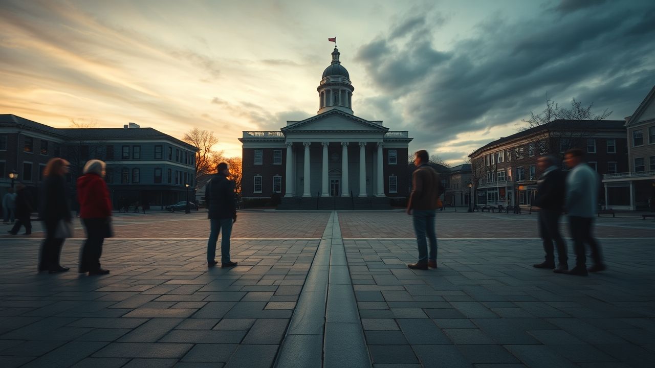 {"prompt":"A wide (landscape) cinematic photograph depicting a quintessential American town square at a transitional moment between late afternoon and dusk. In the foreground, two distinct, subtly separated groups of anonymously blurred individuals stand on either side of a visible, but not stark, implied divide in the paved square, their postures and slight leanings suggesting differing perspectives without direct confrontation. One group subtly incorporates muted, earthy red tones in their attire, while the other features muted, cool blue hues, symbolizing ideological divergence. In the background, a grand, classic American courthouse or town hall, with its stately columns and dome, stands as a timeless symbol of institutional America. The sky above is dramatic and expansive, with a gradient of warm, fading orange and soft yellows on one horizon transitioning into deep, thoughtful twilight blues and grays on the opposite side, reflecting the nation's complex and evolving state. Long, dramatic shadows stretch across the square, emphasizing depth and the passage of time. The overall composition is balanced yet conveys an underlying tension and deep societal introspection, capturing the essence of a nation undergoing profound change and polarization. Realistic, high-resolution, no text, no logos, no watermarks.","originalPrompt":"A wide (landscape) cinematic photograph depicting a quintessential American town square at a transitional moment between late afternoon and dusk. In the foreground, two distinct, subtly separated groups of anonymously blurred individuals stand on either side of a visible, but not stark, implied divide in the paved square, their postures and slight leanings suggesting differing perspectives without direct confrontation. One group subtly incorporates muted, earthy red tones in their attire, while the other features muted, cool blue hues, symbolizing ideological divergence. In the background, a grand, classic American courthouse or town hall, with its stately columns and dome, stands as a timeless symbol of institutional America. The sky above is dramatic and expansive, with a gradient of warm, fading orange and soft yellows on one horizon transitioning into deep, thoughtful twilight blues and grays on the opposite side, reflecting the nation's complex and evolving state. Long, dramatic shadows stretch across the square, emphasizing depth and the passage of time. The overall composition is balanced yet conveys an underlying tension and deep societal introspection, capturing the essence of a nation undergoing profound change and polarization. Realistic, high-resolution, no text, no logos, no watermarks.","width":1280,"height":720,"seed":42,"model":"flux","enhance":false,"nologo":true,"negative_prompt":"undefined","nofeed":false,"safe":false,"quality":"medium","image":[],"transparent":false,"isMature":false,"isChild":false}