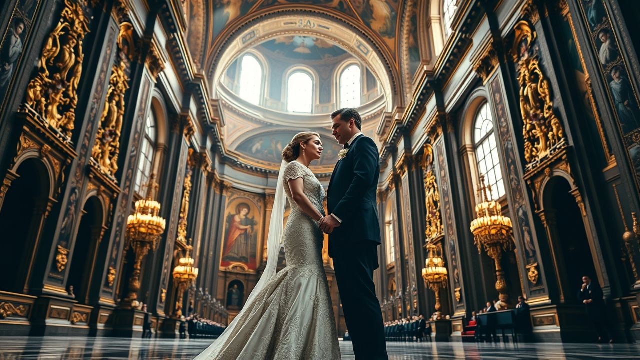 {"prompt":"A wide, majestic, high-definition photographic image capturing Princesse Victoria Romanovna and Grand Duke George Mikhailovich inside the opulent St. Isaac's Cathedral in Saint-Petersburg, Russia. The scene depicts a solemn yet graceful moment from their historic wedding, emphasizing the fusion of tradition and modernity. Princesse Victoria, elegant and poised in a classic, refined bridal gown with intricate details, stands beside the Grand Duke in his formal attire, showcasing their dignified presence. The background vividly showcases the cathedral's breathtaking interior, filled with shimmering golden iconostases, intricate mosaic details, and lofty, ornate ceilings adorned with frescoes. Soft, ethereal light streams through high arched windows, casting a gentle glow that illuminates the rich, deep jewel tones of the decor - gleaming gold, deep blues, and crimson reds - creating a sense of reverence, historical grandeur, and sacred space. The composition is regal and balanced, focusing on the couple amidst the awe-inspiring Russian architectural heritage. The image is clear, undistorted, visually coherent, and realistic in style, with no text, logos, watermarks, or other typographic elements.","originalPrompt":"A wide, majestic, high-definition photographic image capturing Princesse Victoria Romanovna and Grand Duke George Mikhailovich inside the opulent St. Isaac's Cathedral in Saint-Petersburg, Russia. The scene depicts a solemn yet graceful moment from their historic wedding, emphasizing the fusion of tradition and modernity. Princesse Victoria, elegant and poised in a classic, refined bridal gown with intricate details, stands beside the Grand Duke in his formal attire, showcasing their dignified presence. The background vividly showcases the cathedral's breathtaking interior, filled with shimmering golden iconostases, intricate mosaic details, and lofty, ornate ceilings adorned with frescoes. Soft, ethereal light streams through high arched windows, casting a gentle glow that illuminates the rich, deep jewel tones of the decor - gleaming gold, deep blues, and crimson reds - creating a sense of reverence, historical grandeur, and sacred space. The composition is regal and balanced, focusing on the couple amidst the awe-inspiring Russian architectural heritage. The image is clear, undistorted, visually coherent, and realistic in style, with no text, logos, watermarks, or other typographic elements.","width":1280,"height":720,"seed":42,"model":"flux","enhance":false,"nologo":true,"negative_prompt":"worst quality, blurry","nofeed":false,"safe":false,"quality":"medium","image":[],"transparent":false,"isMature":false,"isChild":false}