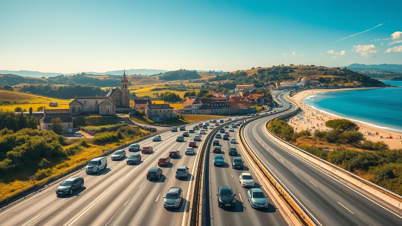 {"prompt":"A wide, panoramic, realistic landscape image capturing the vibrant essence of a French summer long weekend. The foreground features a busy yet flowing multi-lane highway, with diverse vehicles packed for travel, receding into the distance, conveying a sense of mass departure. In the mid-ground, typical charming French villages with characteristic stone and tiled roofs are nestled amidst rolling, sun-drenched green hills, with a historic church spire subtly visible against the horizon, hinting at the holiday's religious origins. The background opens up to a sparkling, expansive coastline with azure waters and golden sandy beaches, dotted with small groups of people enjoying various leisure activities like swimming, sunbathing, and relaxed gatherings. The scene is bathed in bright, warm golden hour sunlight, casting long, soft shadows and creating a cheerful, inviting atmosphere. The sky is a clear, vibrant blue with a few wispy clouds. The composition should convey a sense of journey, escape, and widespread enjoyment across the diverse landscapes of France during this popular strategic holiday. No text, logos, or watermarks.","originalPrompt":"A wide, panoramic, realistic landscape image capturing the vibrant essence of a French summer long weekend. The foreground features a busy yet flowing multi-lane highway, with diverse vehicles packed for travel, receding into the distance, conveying a sense of mass departure. In the mid-ground, typical charming French villages with characteristic stone and tiled roofs are nestled amidst rolling, sun-drenched green hills, with a historic church spire subtly visible against the horizon, hinting at the holiday's religious origins. The background opens up to a sparkling, expansive coastline with azure waters and golden sandy beaches, dotted with small groups of people enjoying various leisure activities like swimming, sunbathing, and relaxed gatherings. The scene is bathed in bright, warm golden hour sunlight, casting long, soft shadows and creating a cheerful, inviting atmosphere. The sky is a clear, vibrant blue with a few wispy clouds. The composition should convey a sense of journey, escape, and widespread enjoyment across the diverse landscapes of France during this popular strategic holiday. No text, logos, or watermarks.","width":1280,"height":720,"seed":42,"model":"flux","enhance":false,"nologo":true,"negative_prompt":"undefined","nofeed":false,"safe":false,"quality":"medium","image":[],"transparent":false,"isMature":false,"isChild":false}