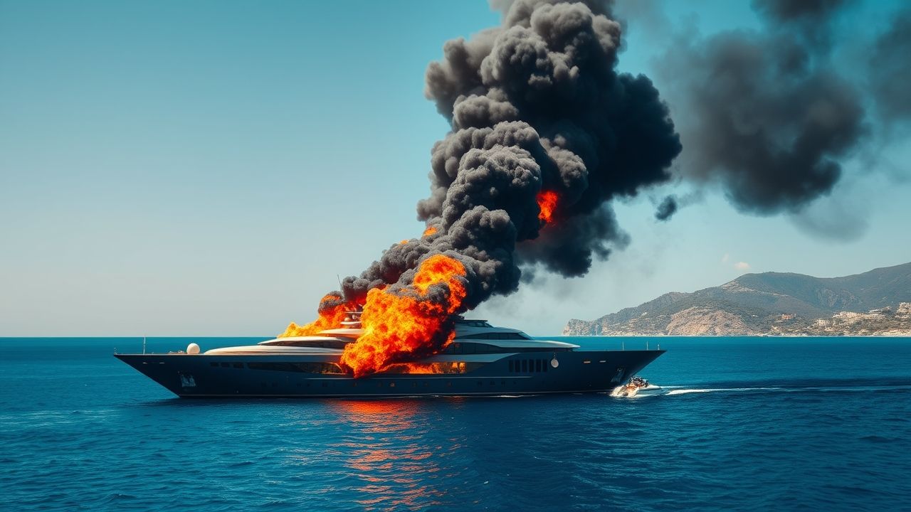 L’alerte a été donnée en début d’après-midi, alors que le yacht était ancré à quelques encablures de la côte. Les premières images diffusées sur les réseaux sociaux montraient déjà un panache de fumée impressionnant. L’incendie, qui semble avoir pris naissance dans la salle des machines, s’est rapidement propagé, alimenté par les matériaux composites et les équipements à bord.
